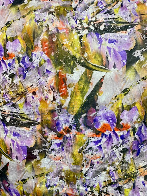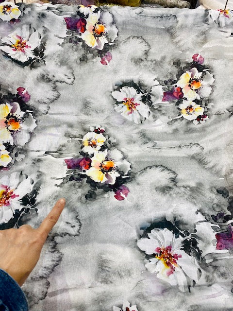 100% printed linen, digital prints, medium weight, excellent quality, suitable for blouses or dresses, 54"